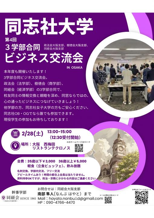 〈大阪支部〉第4回3学部合同ビジネス交流会