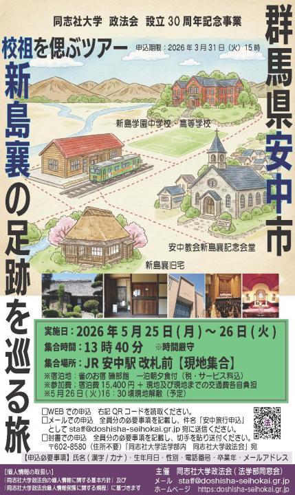 〈ご案内〉政法会設立30周年記念事業・校祖を偲ぶツアー「新島襄の足跡を巡る旅・群馬県安中市」